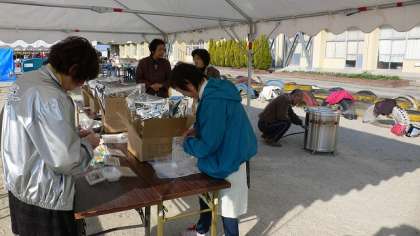 炊き出し訓練も行われました。訓練終了後、このブースで炊きあがったごはんが参加者に配布されました。