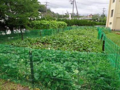 校舎裏はまだかなりのイモが残っています。死守しなければなりません。
