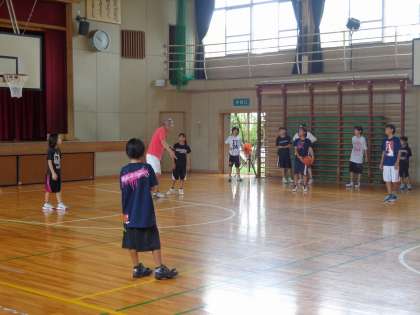 夏休み最後の今日、バスケットボールクラブ、音楽部の子どもたちが練習に頑張っています。