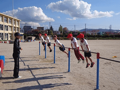 縄跳びに挑戦です。上手に跳べる子がたくさんいます。元気に何回も連続して跳べました。日頃の運動や遊びの成果ですね。