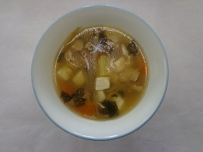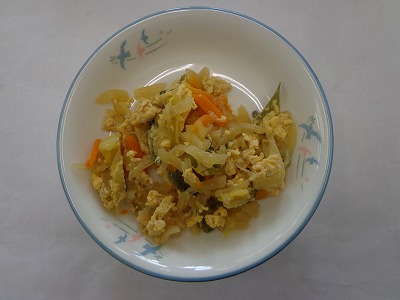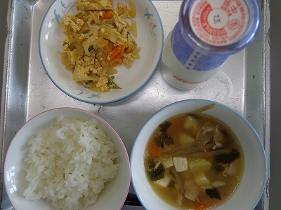 献立は、じゃがいもののっぺい汁、大根とねぎの卵とじ、ごはん、牛乳です。