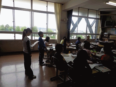 水について学びます。浄水場の見学も予定しています。実習生が担任の指導の下、実習に取り組んでいます。