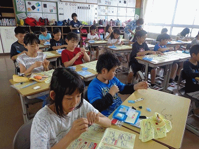 1組です。玉止め・玉結びの練習です。裁縫の基本中の基本です。しっかりと身に付けましょう。