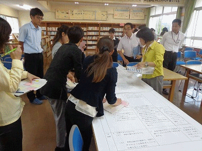 スクールセミナーとして、崎先生の研究授業をたたき台として、協議をしました。助言者として、教科指導員と指導主事の先生をお招きしました。