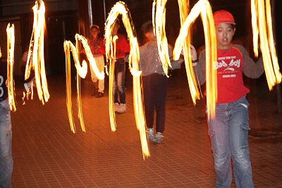 光の弧がきれいです。トワリングのメンバー、頑張りました。