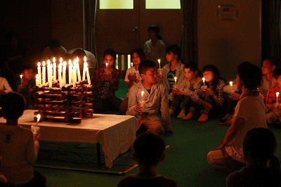 スタンツで盛り上がった後は、火を見つめてしんみりした時間を持ちました。