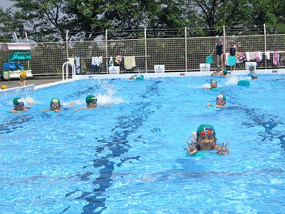 4年2組がプールの授業です。ビート板を使って、バタ足の練習を繰り返しています。