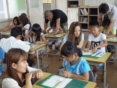 2年生は、カッターナイフを使った「窓のある家つくり」の工作をしました。