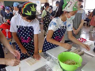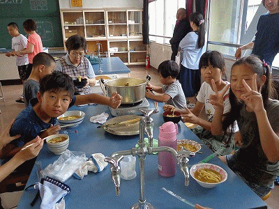 6年生は、家庭科室と理科室を使って、カレーうどん作りを行いました。講師の先生方、ありがとうございました。