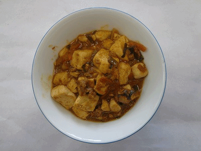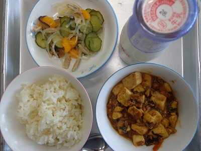 献立は、マーボー豆腐、中華あえ、発芽玄米ごはん、牛乳です。