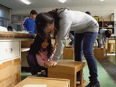 「小物かけをつくる」単元です。のこぎりにてこずってますが、だんだん作品が出来上がってきました。
