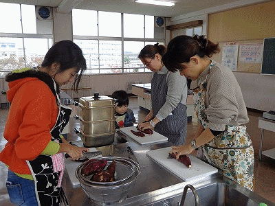 2年生の保護者の方に、秋祭りのお手伝いをしていただきました。畑で収穫したおいもを切って蒸して、おいも屋さんになっていただきました。お手伝いいただいた保護者の皆様、ありがとうございました。