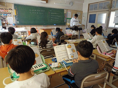 ピアニカのテストで、一人ずつ「こぎつね」を演奏します。やる気満々、みんなしっかり演奏できました。