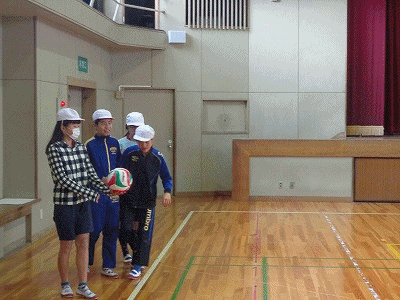 バレーボールのサーブの練習です。欠席者が多くて、ちょっと寂しい体育です。