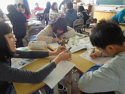 「コマコマアニメーション」の単元です。班でキャラクターを動かすシナリオ作りです。デジカメで画像をたくさん取って、早送りにしてアニメーションに仕上げます。