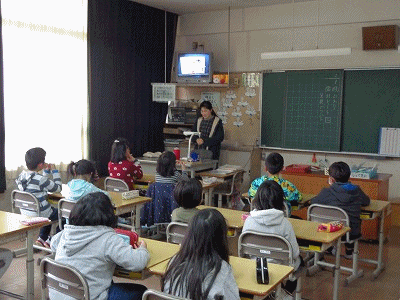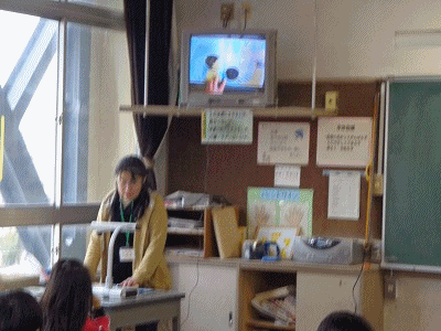 1組のお話は「あたまにかきの木」。頭の上に落ちた柿の実をそのままにしておいたら、木になりました。語り手は安藤さんです。2組のお話は「ゆきまつり」。窓外の雪がムードを高めます。語り手は谷口さんでした。