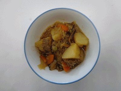 献立は、肉じゃが、五色あえ、ごはん、牛乳です。