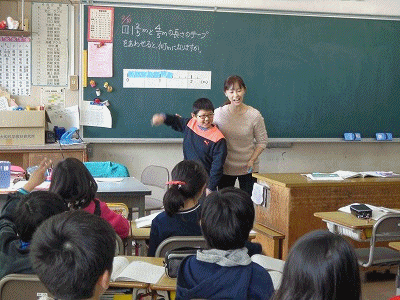分数の足し算と引き算です。暁先生と教頭先生、そしてクラスのみんなで力を合わせてがんばっています。