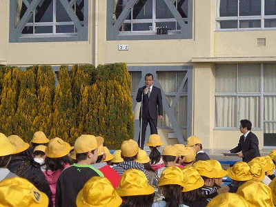 久しぶりの全校集会です。読書感想画の表彰がありました。校長先生からは、普段から気を付けて準備しておくことが大切、という話がありました。