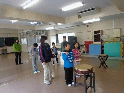 こちらはたんぽぽ組の送る会練習です。太鼓をたたく表情は真剣そのものです。迫力ある演技になりそうです。