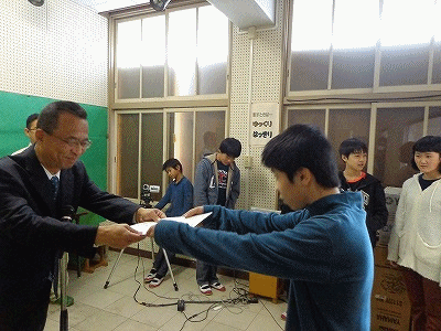 お昼の放送で、6年生が作った標語の表彰がありました。1組大野君、高木君、長友君、橋本さん、潘さん、2組岩瀬君、北村さん、近藤君、中原君、野川君の10名です。標語は黄緑色ののぼり旗になって、校門付近に設置される予定です。