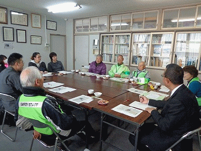 最近はあいさつを返してくれる児童が増え、声も大きくなってきてうれしいこと、相変わらず自転車のヘルメットをかぶらない児童が多いこと、一旦停止で止まらない自動車が多くて危険であることなどが話題として出されました。お忙しい中、貴重なご意見をいただき、ありがとうございました。