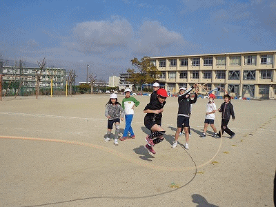 大縄跳びに挑戦です。さすが5年生、連続八の字跳びがスムーズにできます。