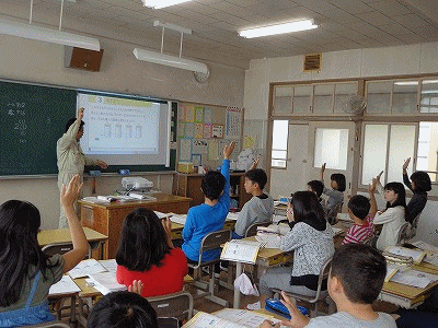 「物の燃え方と空気」のたしかめです。実験でで得られた結果を、言葉でみんなが理解できるよう、話し合います。アクティブラーニングの取組です。