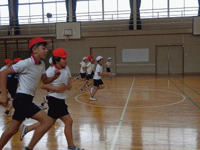 シャトルランのリハーサルをしました。まさに自分との戦いです。女子から声援が飛びます。明日が本番……頑張れ5年生!