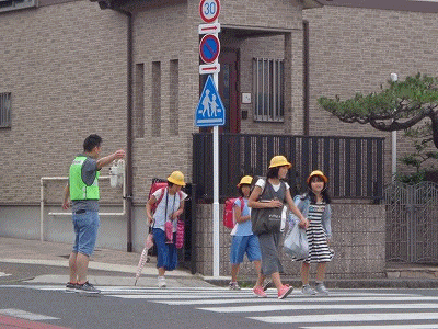 今日は日曜学級です。安全ボランティア、PTA安全部の方が特別にごあいさつ活動をしてくださいました。日曜日の朝早くから、ありがとうございました。