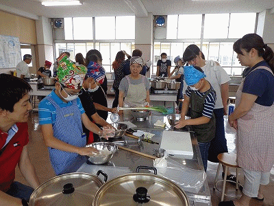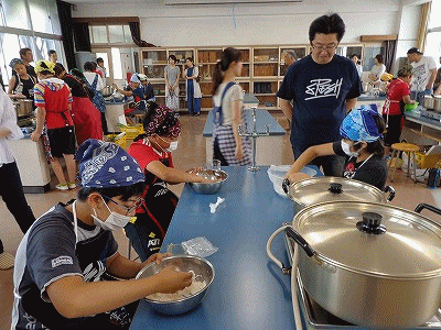 6年生は、恒例のカレーうどん作りです。公民館の方たちに助けていただき、粉から生地をこねてうどんに仕上げました。みんなで力を合わせて作ったうどんの味はどうでしたか?