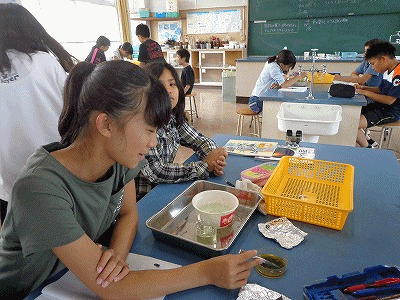日光に当たった葉がでんぷんを作ったことを調べます。なかなか高度な実験になってきました。