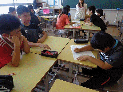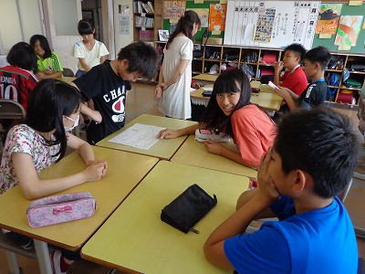 グループで漢字コンクール対策の練習会をやっています。協力して楽しみながら進めています。