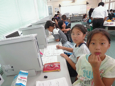 いよいよあと1週間で夏休みも終わります。宿題が残っている子、1学期の復習がしたい子が集まって、涼しいコンピューター室で最後の「夏のがんばり」をしました。2時間半、しっかり学習ができました。