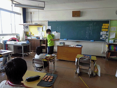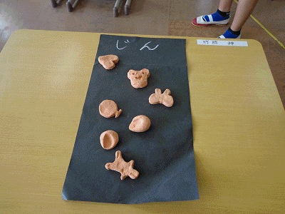 粘土で箸置きを作りました。絵と作文もかきます。3年生は交流学級へ行っています。