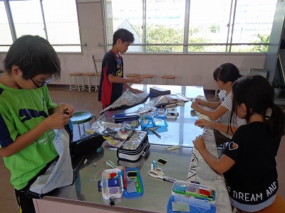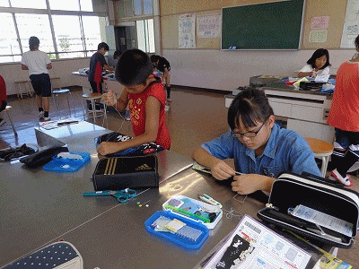 エプロンのしつけぬいをしていました。みんなていねいにぬっていました。