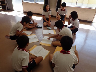 応援練習です。今週末には下級生の指導に当たります。グループごとにしっかりと打ち合わせをします。