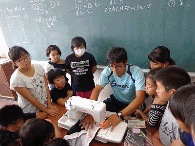 裕樹先生の説明を聞いて、いよいよマイエプロンの作成です。アイロンをかけて、しつけ縫いをします。少しずつ出来上がっていくのが楽しみです。