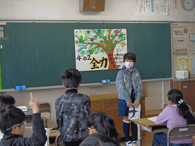 「初雪のふる日」の音読発表会です。4年生1年間の総まとめとして、立派な音読ができました。
