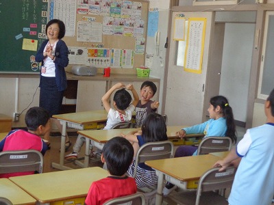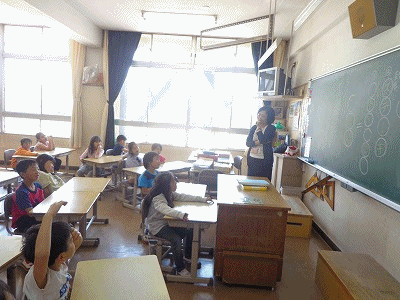 2年生の書写は教頭先生です。まずは自己紹介から。
