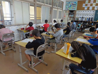 割り算のテストです。定規を利用して、ていねいに問題を解いていました。