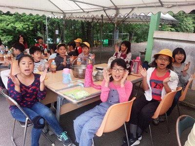 ♪とうとうごはん〜が〜すみました〜♪みんな、満足そうな顔ですね!