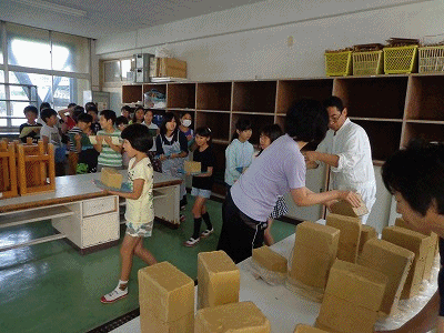 まずは粘土を運びます。結構な重さがあるのでしっかり抱えます。