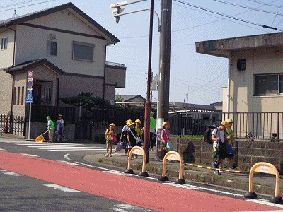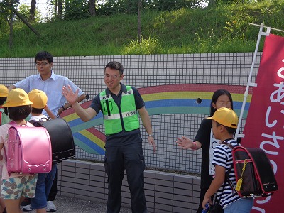 明るく、ほど良い陽射しの中、ハイタッチでごあいさつです。