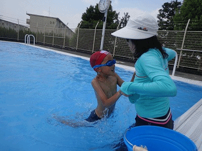 今日は交流学級などに分散しているので、低学年プールでの活動は2人だけですが、楽しくがんばっています。泳ぎがとても上手になりました。