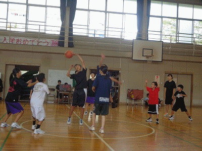 今日は中学校の先輩が来てくれました。監督を先頭に、コーチ・先輩そして高学年から低学年までいっしょに楽しく練習できました。