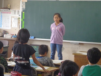 調べたことを一人ずつ発表します。しっかりと聞いて、きちんと質問します。