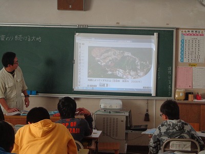 火山のはたらきについて学習しています。図表や動画によって分かりやすく学習を進めています。