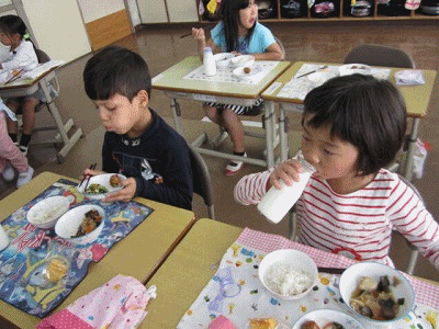 かきを初めて食べる子もいるようです。ビタミンCが豊富なかき、おやつにもよさそうですね。