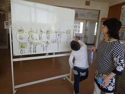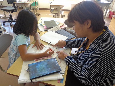 2年生です。Zさんは書き順に気をつけて漢字を書いていました。E君は、感情を込めながら「かえるくんとがまくん」の物語を音読していました。二人ともとても上手なので感心しました。